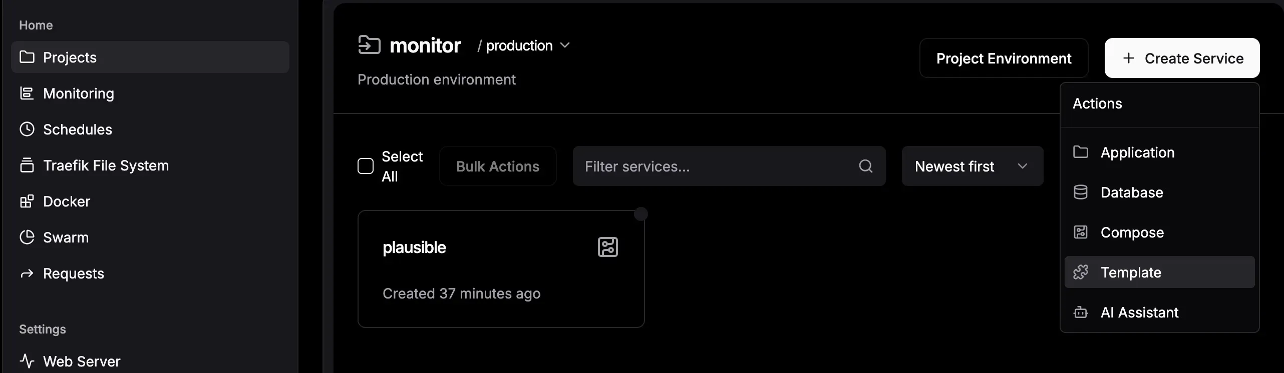 From here, you can explore more templates, deploy additional services, and manage everything through the Dokploy dashboard. There are a lot of interesting services integrated as templates, such as: